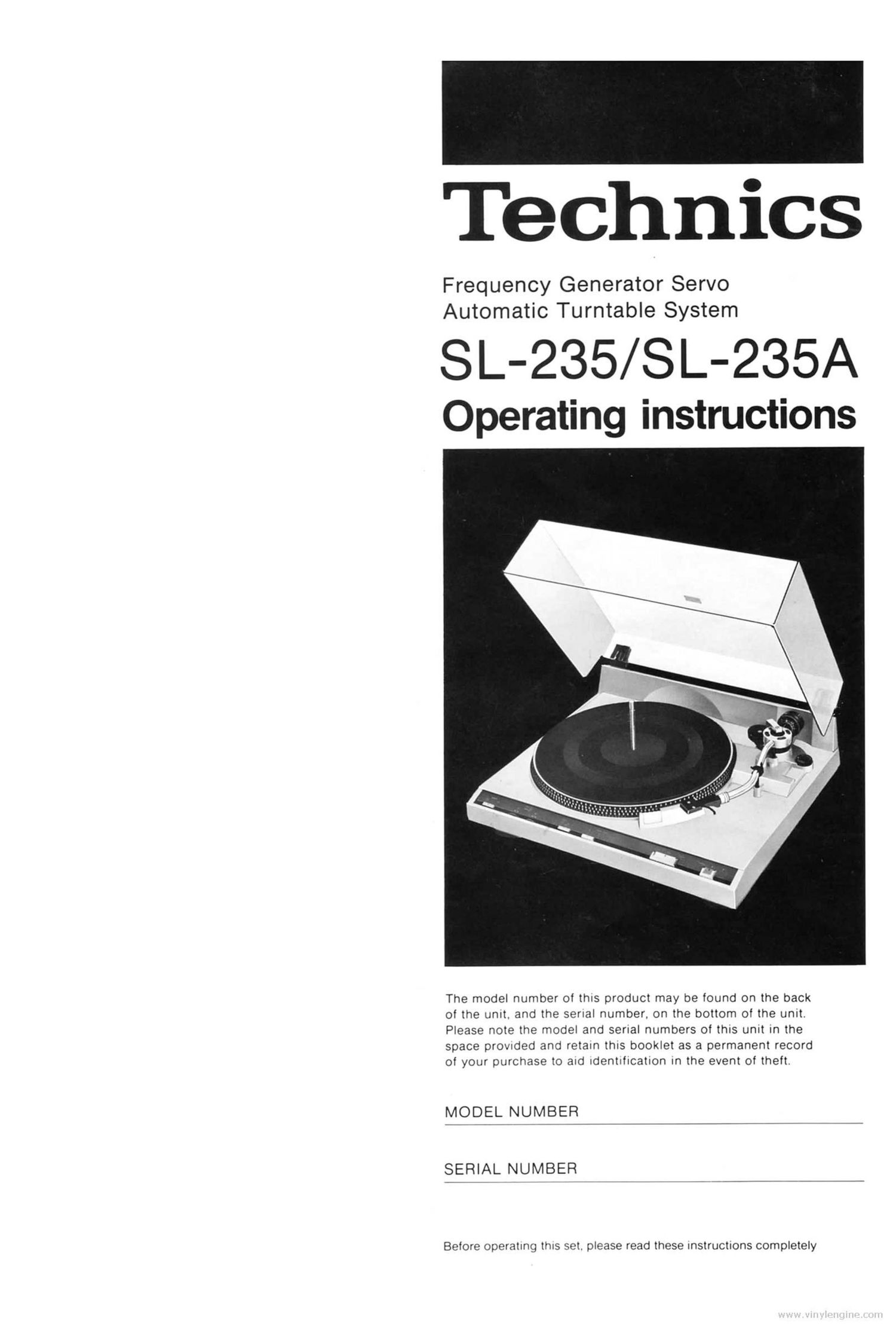 This is the 12 pages manual for Technics SL 235 A Owners Manual.