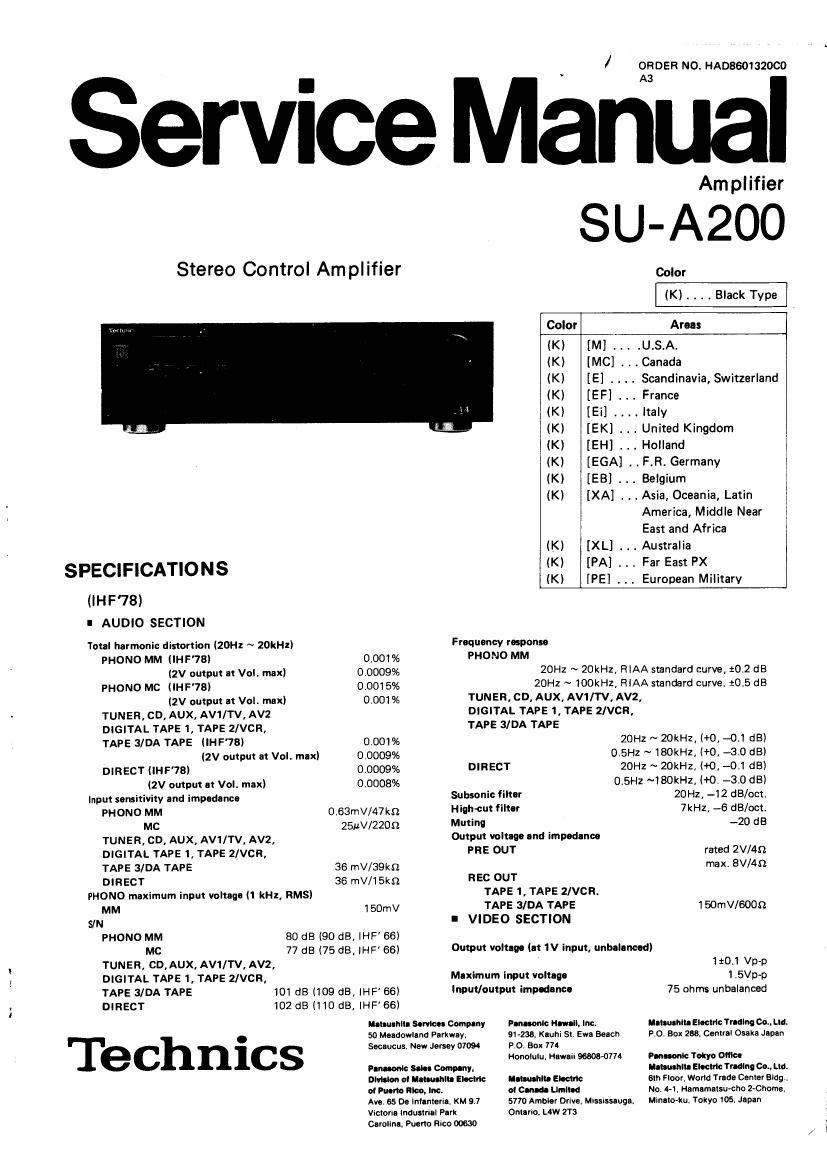 This is the 22 pages manual for Technics SUA 200 Service Manual.