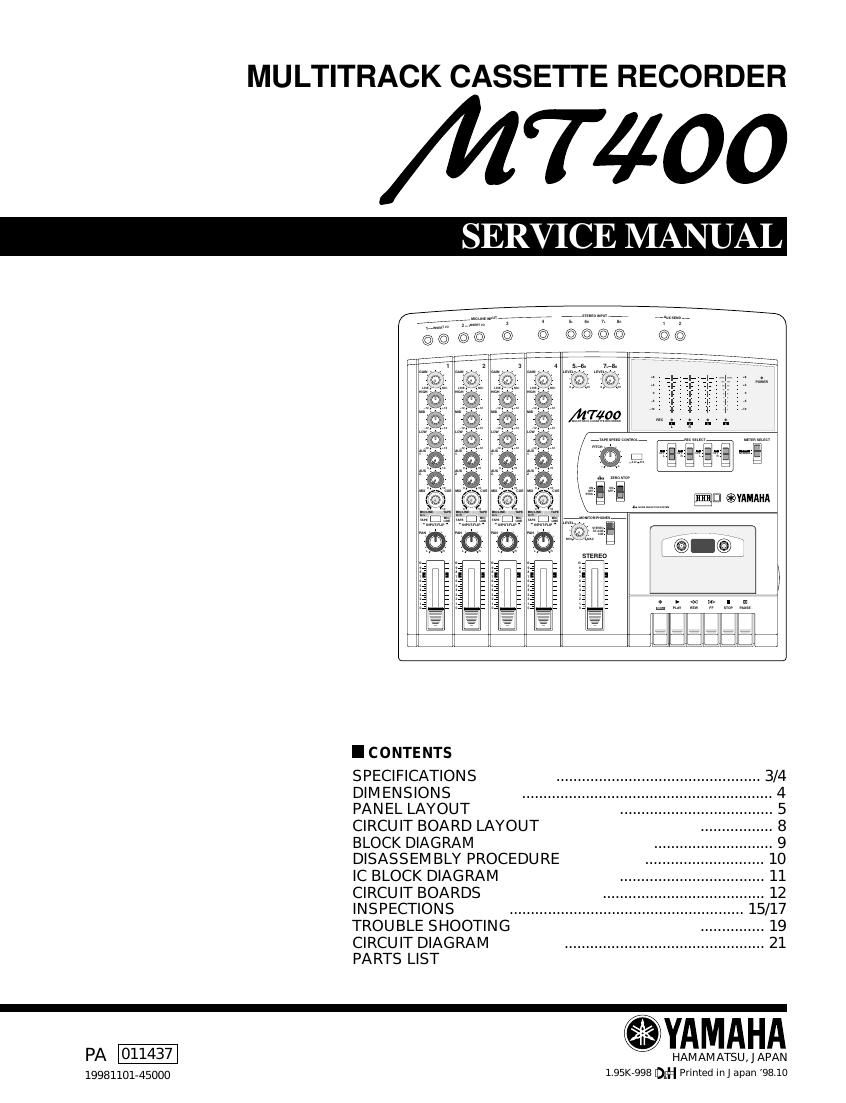 This is the 44 pages manual for yamaha mt400 cassette recorder service manual.