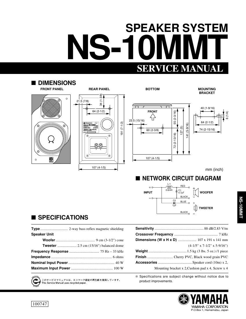 This is the 2 pages manual for yamaha ns 10 mmt.